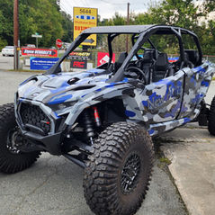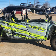 We specialize in UTV wrap kits, all designed and created in-house. The material we use exclusively was designed specifically to stand up to harsh off-road conditions. Very thick and durable, with ridiculously strong adhesive, designed to bond with off-road plastics and metal. It stays on til you take it off! Choose from any of our stock/standard designs or have us create something completely custom to fit your uniquely style, from mild to wild, we can help bring your ideas to life! The majority of the wraps we have created to date have been custom, from scratch designs - we take cues from our customers, design style or theme, things to incorporate, colors, and take it from there, creating a unique design.